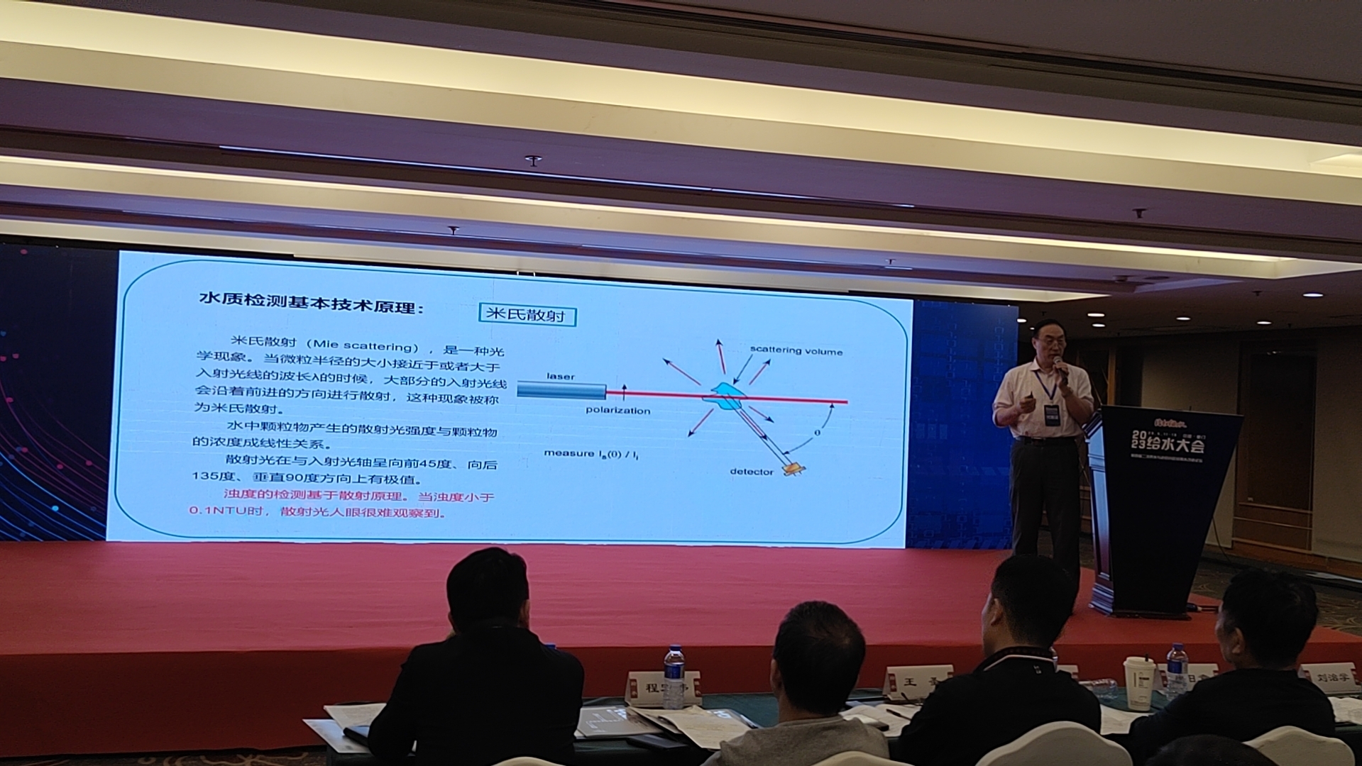 在此次給水大會上,我司董事長、國內環境光學專家、浙江大學光電學院姚軍研究員,同與會者分享了《二次供水水質在線檢測技術原理及產品特點比較》的報告。報告中介紹了二供水質濁度、消毒劑、色度、pH等在線檢測儀器的主要技術原理,光學檢測技術在二供水質在線檢測產品中的應用,并對二供在線水質檢測技術及產品特點進行了比較。報告獲得了與會者的好評及關注。